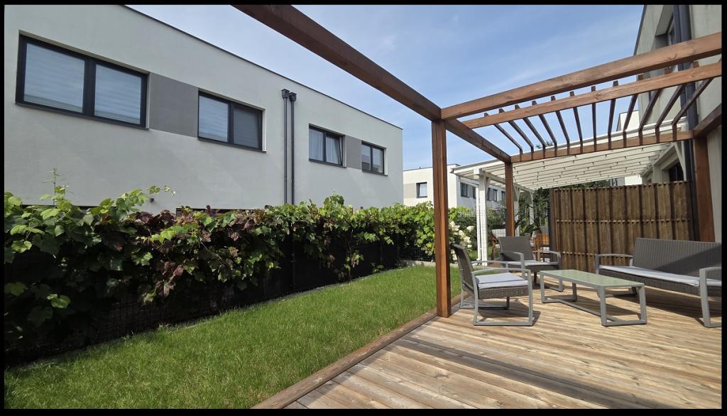 The central part of the house is a large, bright living room of … m² combined with the kitchen and opening onto the terrace. The upper level contains four bedrooms. The layout is very functional, with sunny interiors — perfect for a family with children or a couple working from home. Rental for a company is also possible.