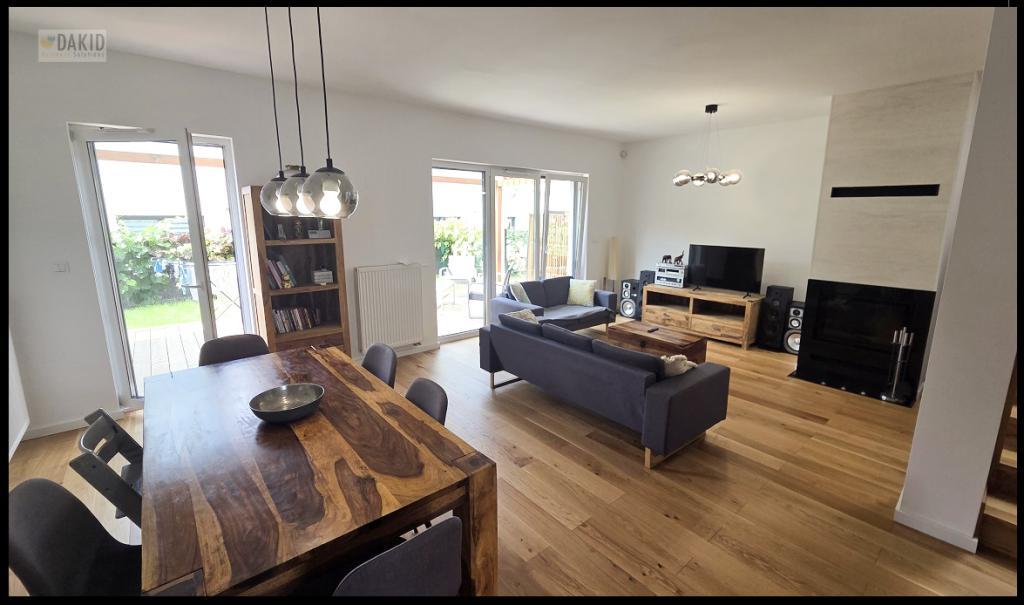 Additional audio systems and air conditioning installed.The house has been carefully designed and finished according to a custom architectural project. High-quality built-in kitchen furniture and a fully equipped kitchen. Furniture made of sesame wood, Hi-Fi system and TV included. Bathroom with LED lighting, audio system, bathtub, and shower.