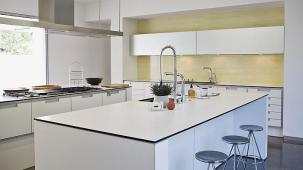 This apartment with nice shades of blue and a beautiful bathroom will help you to relax after work.